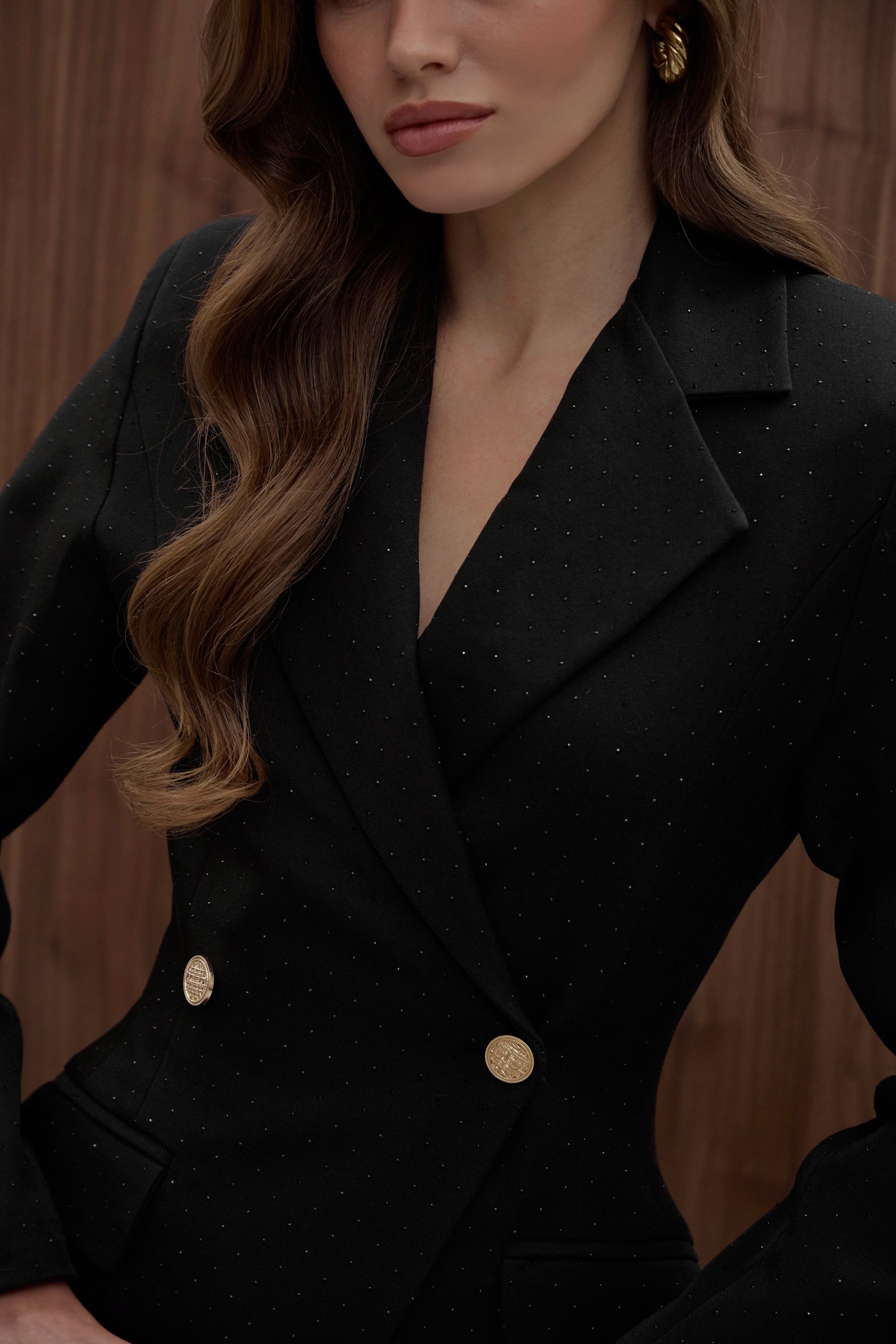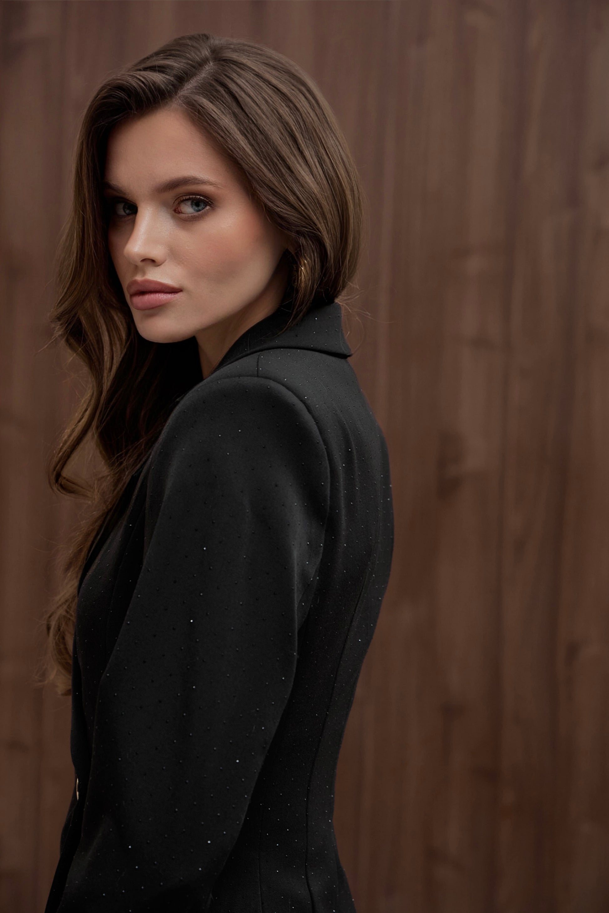 У профіль жакет створює ефект бездоганної постави завдяки вивіреним лініям та точному крою.